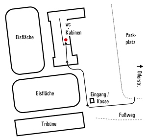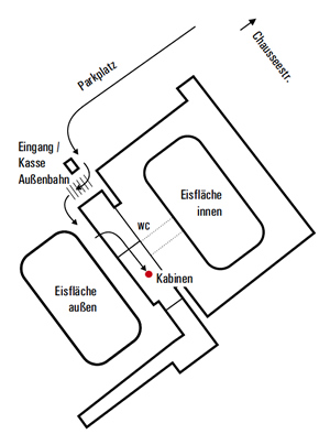 Internet: Das Eisstadion liegt verkehrsgünstig und zentral neben der Stadtautobahn, Es bietet eine 30 x 60 m Eisfläche, auf der unsere Kurse stattfinden und darüber hinaus einen 400 m Ring, der dem Publikum zu bestimmten Zeiten zur Verfügung steht. Während unserer Trainingszeit ist der Ring für den öffentlichen Lauf geöffnet.